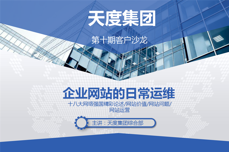 企業(yè)網(wǎng)站建設(shè)是企業(yè)文化的組成部分,對企業(yè)形象的建立和企業(yè)知名度的提高起著至關(guān)重要的作用,是企業(yè)實(shí)現(xiàn)”互聯(lián)網(wǎng)+“產(chǎn)業(yè)轉(zhuǎn)型的重要手段。建一個網(wǎng)站,對于大多數(shù)人并不陌生。尤其是已經(jīng)擁有自己網(wǎng)站的企業(yè)和機(jī)構(gòu)。但是提到網(wǎng)站運(yùn)營可能特別多人不理解,對網(wǎng)站運(yùn)營的重要性也不明確,通常被忽視。故此天度集團(tuán)專門針對“企業(yè)站的日常運(yùn)維”展開了第十期客戶沙龍。