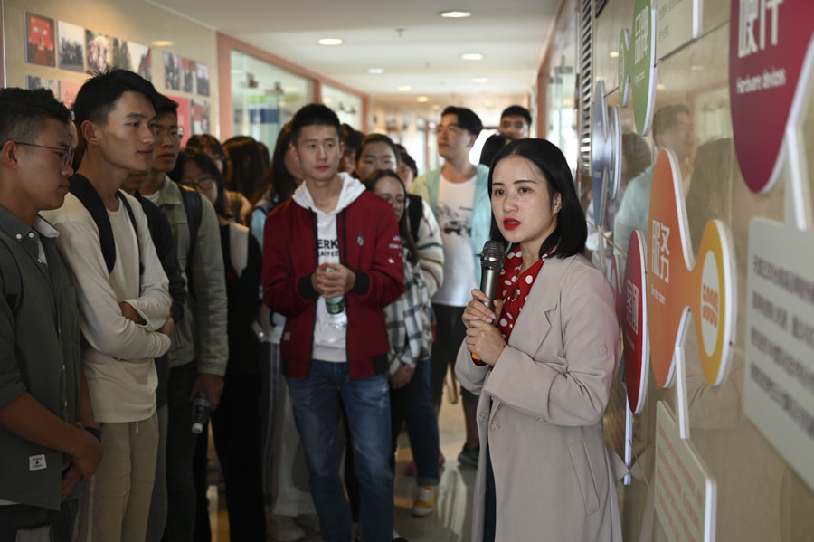 ▲師生參觀天度集團(tuán)企業(yè)文化長(zhǎng)廊