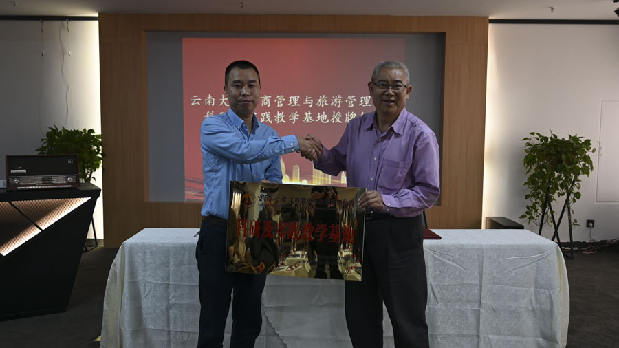 為深入推進(jìn)校企合作協(xié)議,云南大學(xué)商旅學(xué)院副院長(zhǎng)姚建文為云南天度集團(tuán)授予了“云南大學(xué)科研及實(shí)踐教學(xué)基地”牌匾,雙方將以此為契機(jī),共同譜寫校企合作的新篇章。