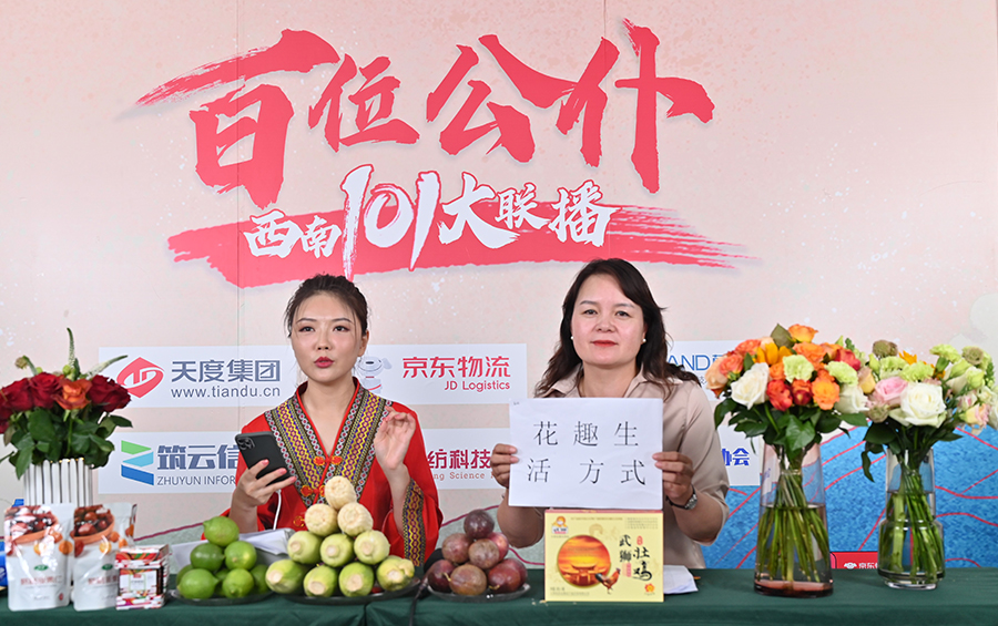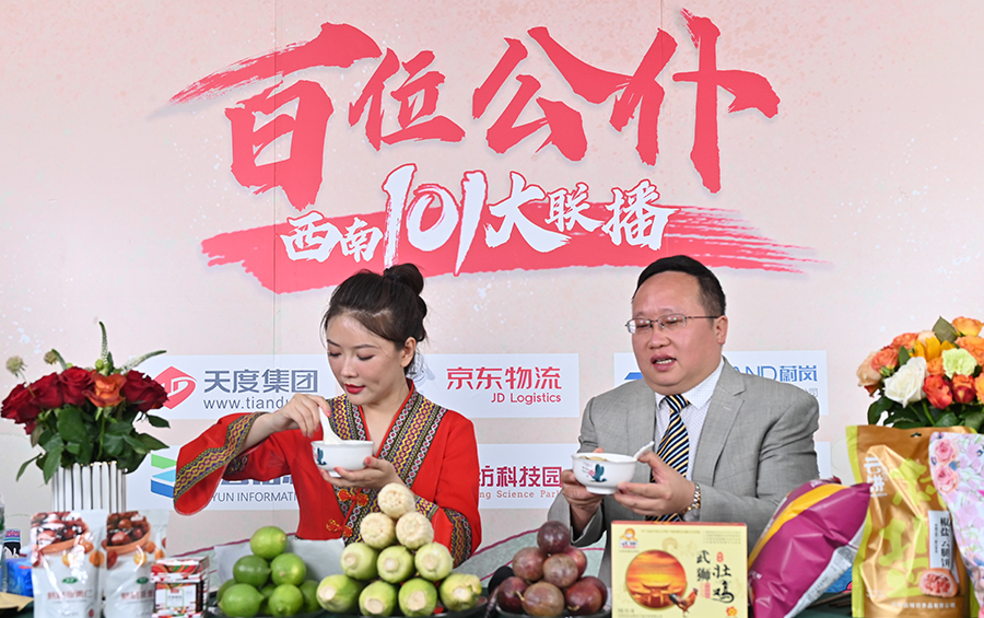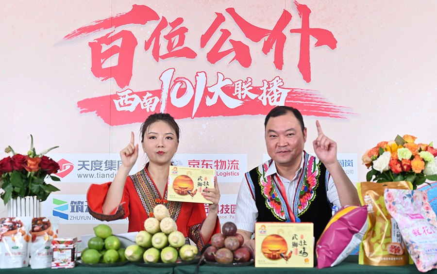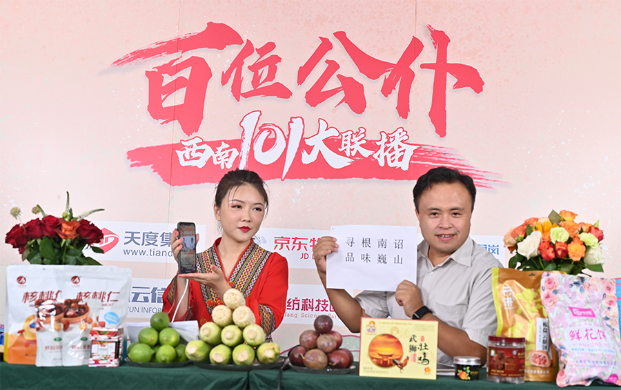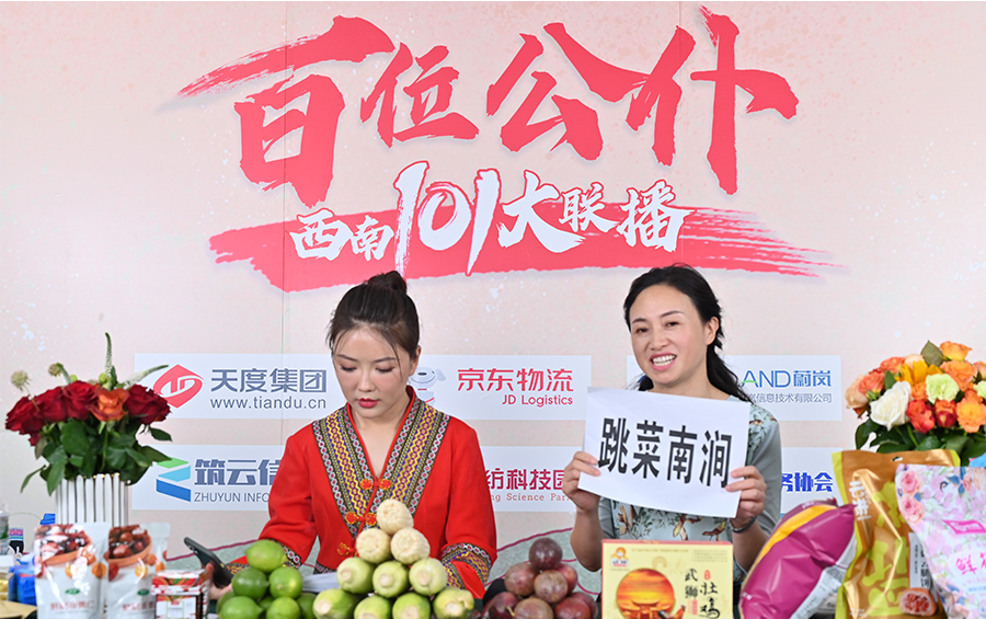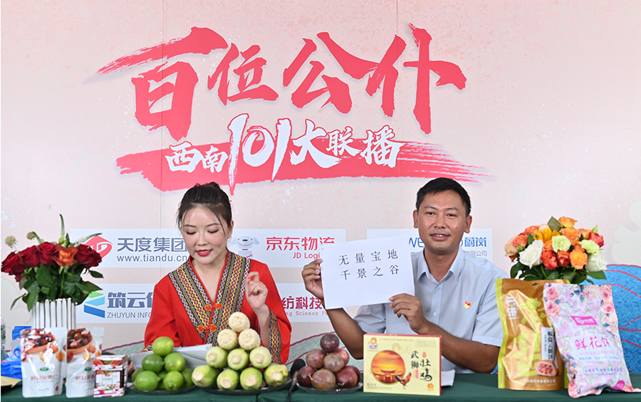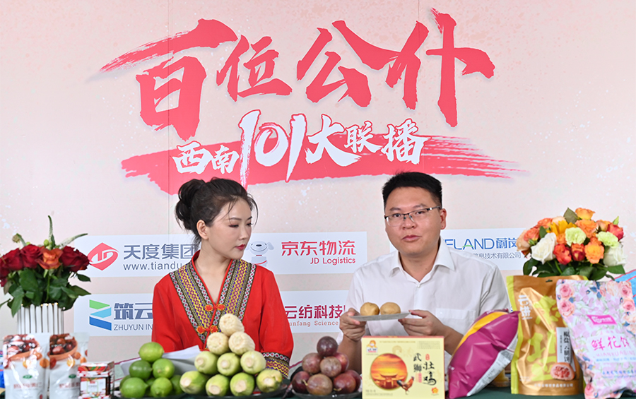 6月17日下午,“百位公仆,西南101大聯(lián)播”大型助農(nóng)直播活動(dòng)在云紡科技園直播基地舉行,來自云南巍山、南澗、水富、個(gè)舊、開遠(yuǎn)、彝良、武定、景東、景谷等縣(市)的11位副縣(市)長,與四川知名電視主持人、直播記者郭秀一同走進(jìn)直播間,同框出鏡,為云南各地好貨代言,推動(dòng)農(nóng)產(chǎn)品推廣上行,助力脫貧攻堅(jiān)。近3小時(shí)的直播中,特色的農(nóng)產(chǎn)品、實(shí)惠的價(jià)格,以及豐厚的贈(zèng)品吸引了260多萬網(wǎng)友圍觀。
