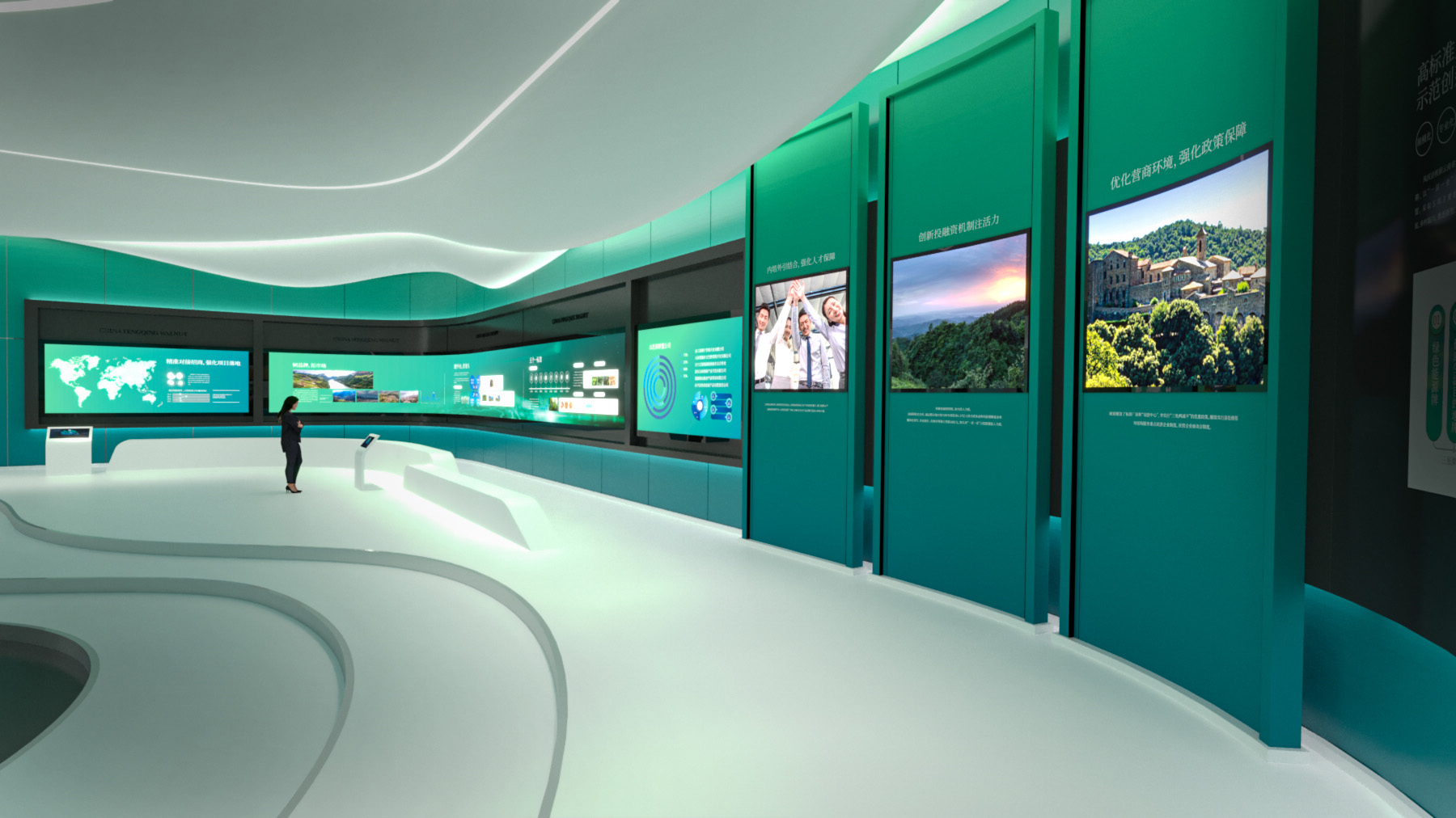 數(shù)字沙盤的運(yùn)用能夠?qū)⑵髽I(yè)的空間布局和發(fā)展規(guī)模都生動(dòng)形象的表現(xiàn)出來,能夠讓觀眾一目了然,展示效果直觀有震撼力。數(shù)字展廳要傳達(dá)什么內(nèi)容和信息,需要通過鮮明的主題來展示給觀眾,因此,在進(jìn)行展廳設(shè)計(jì)之前,必須對主題定位準(zhǔn)確,通過相應(yīng)的焦點(diǎn),再配合適當(dāng)?shù)纳省D標(biāo)與裝飾,以協(xié)調(diào)一致、突出重點(diǎn)的方式來達(dá)到傳遞;設(shè)計(jì)材質(zhì)選擇時(shí)不宜太過于古板,也不適合選擇過于跳躍性的顏色,無論是顏色抑或是數(shù)字展廳主要材質(zhì)都要讓人感覺到大氣、高雅、莊重,因此要選擇合適的顏色來裝飾展廳;設(shè)計(jì)可以靈活運(yùn)用多媒體展項(xiàng),靈活運(yùn)用各類多元化的展示技術(shù),采用聲光電結(jié)合硬裝造型來提升參觀者體驗(yàn),避免枯燥乏味傳統(tǒng)展廳展示形式,影響整體品位和形象。