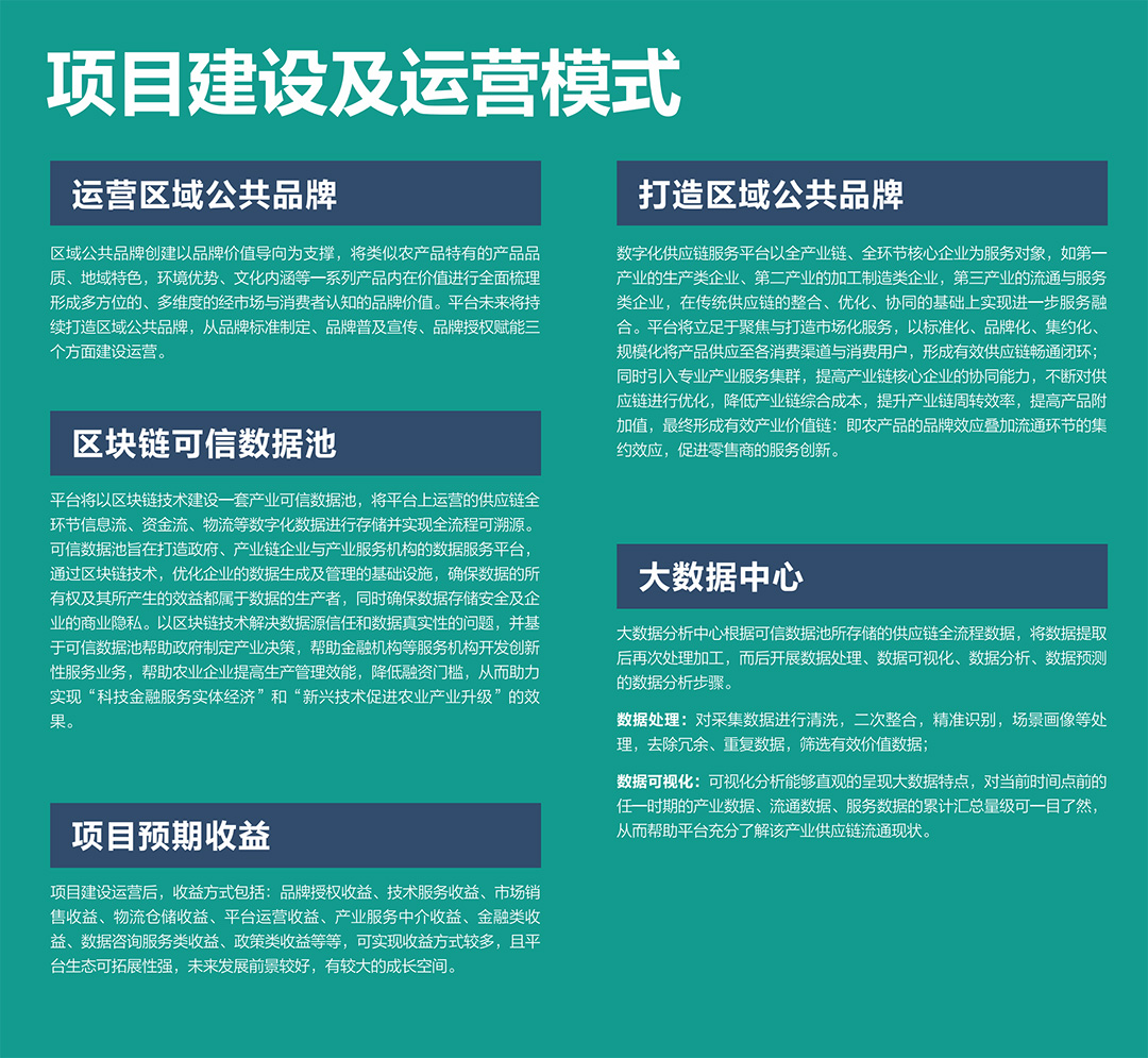 區(qū)域公共品牌創(chuàng)建以品牌價(jià)值導(dǎo)向?yàn)橹危瑢㈩愃妻r(nóng)產(chǎn)品特有的產(chǎn)品品質(zhì)、地域特色,環(huán)境優(yōu)勢(shì)、文化內(nèi)涵等一系列產(chǎn)品內(nèi)在價(jià)值進(jìn)行全面梳理形成多方位的,多維度的經(jīng)市場(chǎng)與消費(fèi)者認(rèn)知的品牌價(jià)值。平臺(tái)未來(lái)將持續(xù)打造區(qū)域公共品牌,從品牌標(biāo)準(zhǔn)制定、品牌普及宣傳、品牌授權(quán)賦能三個(gè)方面建設(shè)運(yùn)營(yíng)。