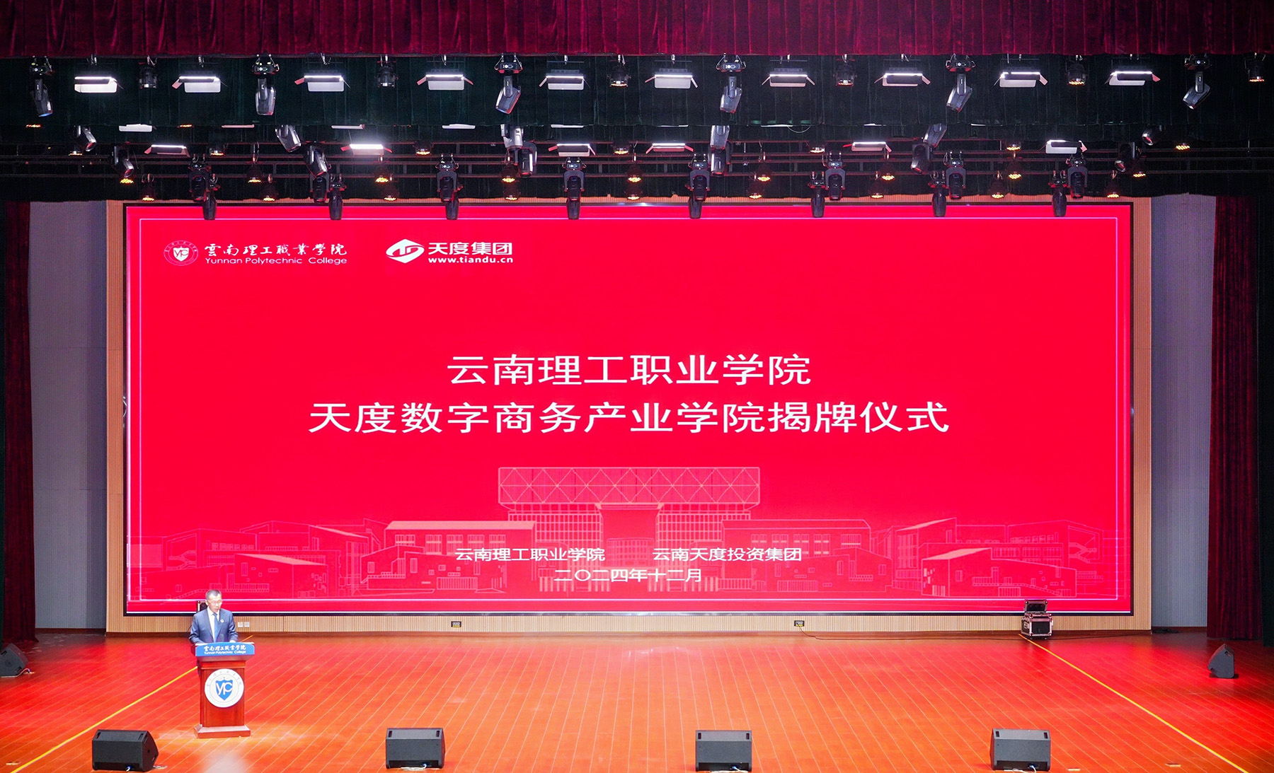12月5日,云南理工職業(yè)學(xué)院天度數(shù)字商務(wù)產(chǎn)業(yè)學(xué)院簽約揭牌儀式在學(xué)生會(huì)堂隆重舉行。此次簽約標(biāo)志著云南理工職業(yè)學(xué)院與云南天度投資集團(tuán)強(qiáng)強(qiáng)聯(lián)手,共同開(kāi)啟職業(yè)教育產(chǎn)教融合新篇章。