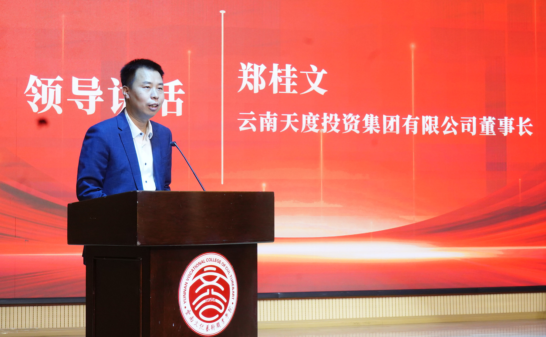 鄭桂文董事長在致辭中表示,此次合作是校企雙方貫徹落實國家職業(yè)教育改革政策、深化產(chǎn)教融合的重要舉措,也是天度集團踐行“以產(chǎn)業(yè)反哺教育、以教育賦能未來”使命的重要一步。天度集團將發(fā)揮其作為區(qū)域數(shù)字經(jīng)濟龍頭企業(yè)所擁有大數(shù)據(jù)研究院、博士后科研工作站等技術(shù)資源優(yōu)勢,以及深耕數(shù)字經(jīng)濟20年的產(chǎn)業(yè)優(yōu)勢,與學(xué)校共同聚焦融媒體技術(shù)與運營、人工智能技術(shù)應(yīng)用、軟件技術(shù)、信息安全應(yīng)用技術(shù)等相關(guān)專業(yè),通過“共建共管”模式深化產(chǎn)教融合,圍繞數(shù)字經(jīng)濟、文旅融合等重點產(chǎn)業(yè)發(fā)展需求,共同建設(shè)校內(nèi)外實訓(xùn)基地,克隆企業(yè)真實研發(fā)環(huán)境,構(gòu)建專業(yè)集群交叉矩陣,共同制定專業(yè)發(fā)展規(guī)劃,定期評估產(chǎn)業(yè)趨勢,動態(tài)優(yōu)化課程體系,保持教學(xué)內(nèi)容與產(chǎn)業(yè)發(fā)展同步,實現(xiàn)“產(chǎn)業(yè)需求進大綱、技術(shù)標(biāo)準(zhǔn)進課堂、真實項目進實訓(xùn)”,合力打造精準(zhǔn)適配市場需求的特色專業(yè)集群,培養(yǎng)數(shù)字經(jīng)濟領(lǐng)域高素質(zhì)技術(shù)技能型人才,賦能區(qū)域數(shù)字經(jīng)濟、文旅融合等重點產(chǎn)業(yè)發(fā)展。鄭董事長還強調(diào)指出,希望通過此次合作,雙方將進一步推動成立產(chǎn)業(yè)學(xué)院并使其成為云南文化藝術(shù)產(chǎn)業(yè)數(shù)字化的“創(chuàng)新引擎”,讓每一位學(xué)子在這里找到“用技術(shù)守護文化、用創(chuàng)意點亮人生”的舞臺!共同書寫產(chǎn)教融合的新篇章,為云南乃至全國的數(shù)字經(jīng)濟及文旅融合產(chǎn)業(yè)注入新的活力與動能!