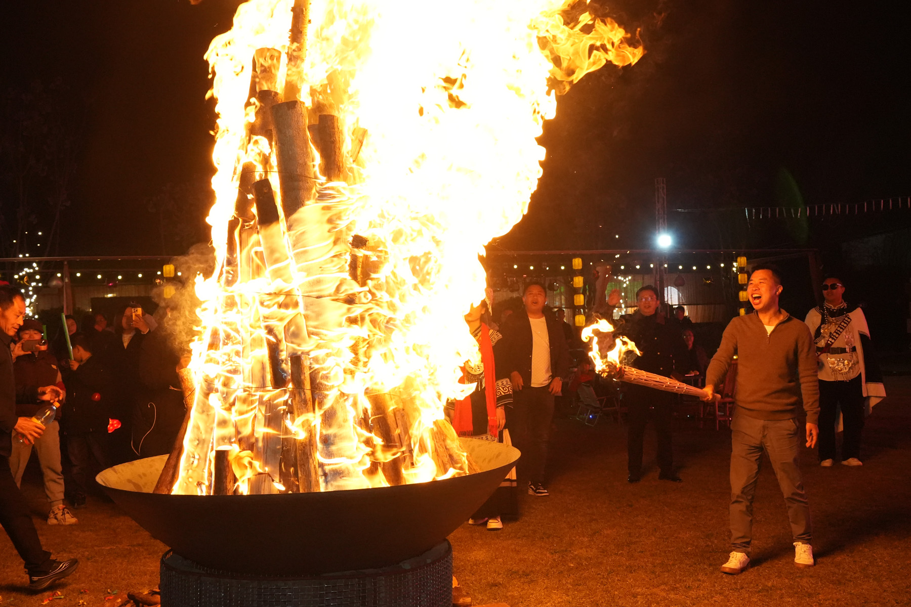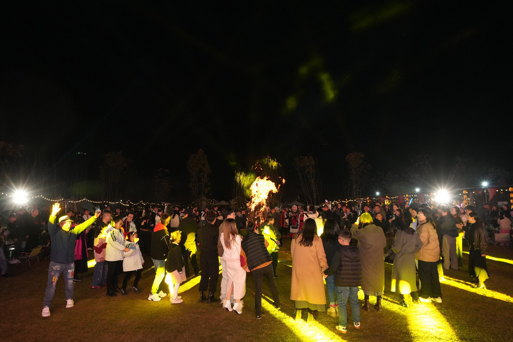 傍晚六點半,在眾人期盼中,集團創(chuàng)始人鄭桂文先生手持火炬,莊嚴(yán)點燃中央主篝火。火焰升騰的剎那,溫暖與光明映照每一張笑臉,象征天度人凝心聚力、薪火相傳的奮斗精神。 篝火既燃,熱情引爆!在專業(yè)打跳團隊的帶領(lǐng)下,所有人手拉手,圍著熊熊篝火,跳起歡快的民族打跳。歌聲、笑聲、腳步聲交織成歡樂的樂章,現(xiàn)場化作一片沸騰的海洋。